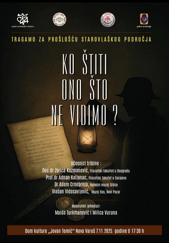 „Ко штити оно што не видимо“ назив је трибине коју у петак 7. новембра са почетком у 17.30 у Дому културе „Јован Томић“ организују Археолошко друштво Србије, Иницијатива „Година археологије 2025“ и Истраживачко-издавачки центар „Стари Влах“ из Београда, уз учешће еминентних археолога и других стручњака у овој области из Београда, Сарајева и Новог Пазара.