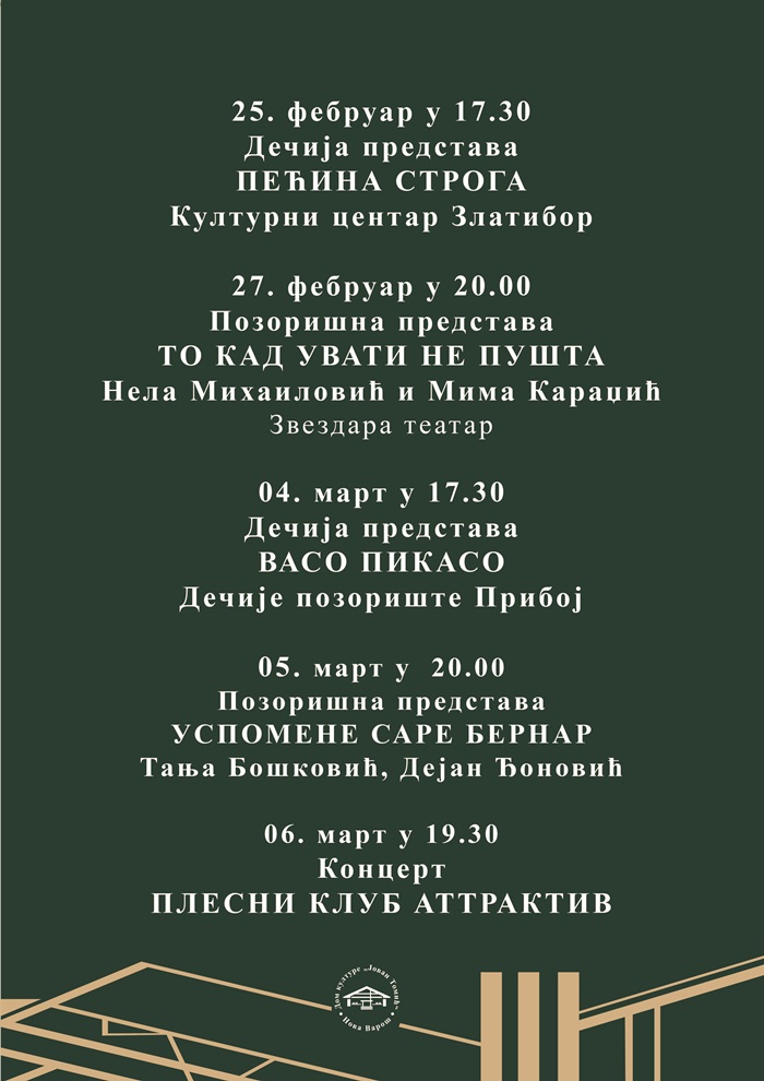 Концертом филмске музике „Филмска рапсодија“, у извођењу виртуоза на хармоници Душана Секулића, уз пратњу бенда и хора, и поетским наступом глумца Ервина Хаџимуртезића, у Новој Вароши су у понедељк 9. фебруара почели Дани културе. Трају до 8. марта, а на програму је десетак драмских, музичких и филмских садржаја.